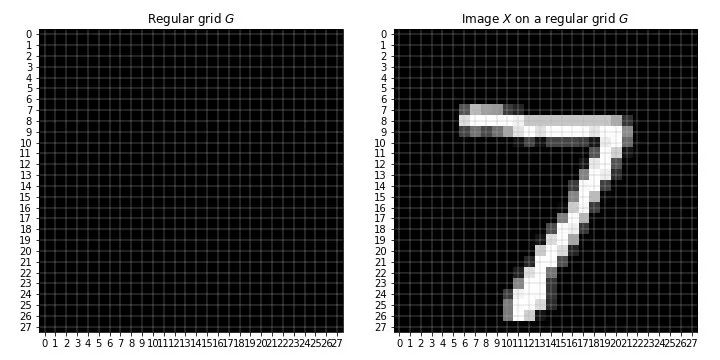 图9:规则28×28网格(左)和该网格上的图像(右)。