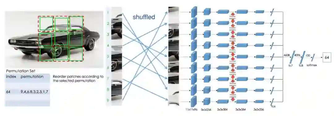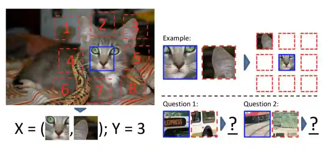 第二类自监督学习任务从一张图像中提取多个补丁,并要求模型预测这些补丁之间的关系。