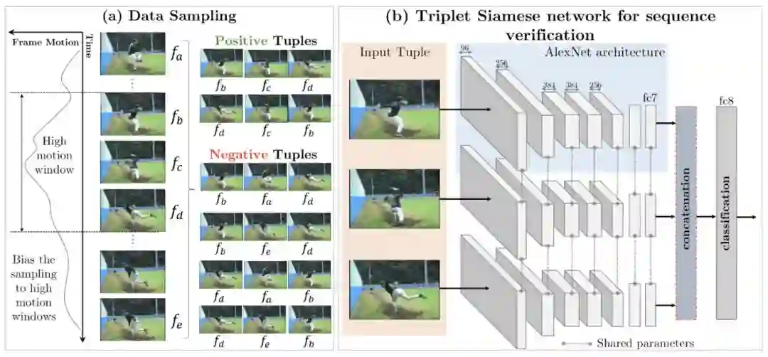 物体的运动情况可以通过一系列视频帧进行跟踪。在临近帧中捕获同一物体的特征方式之间的差异并不大,这些差异通常是由物体或摄像机的微小运动触发的。Wang&Gupta在2015年提出了一种通过跟踪视频中的移动对象来实现无监督学习视觉表示的方法。
