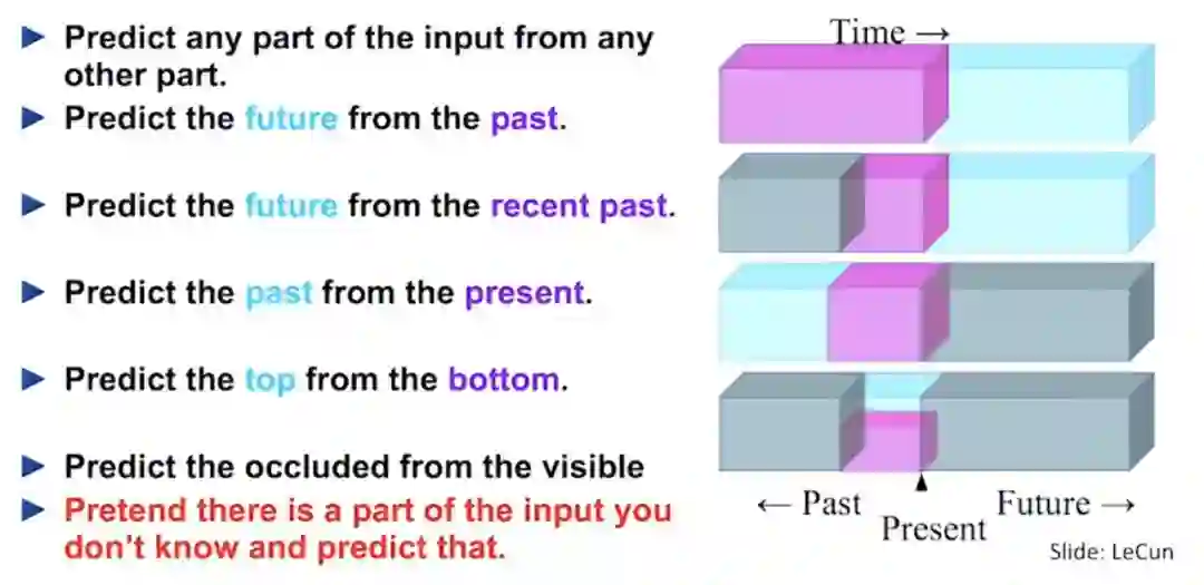 自监督学习使我们能够免费利用数据附带的各种标签。用干净的标签生产数据集很昂贵,但未标记的数据却无时无刻不在产生。为了利用大量的未标记数据,一种方法是正确设置学习目标,以便从数据本身获得监督。