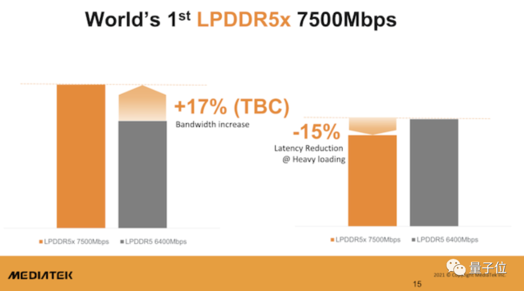 并且作为第一款兼容LPDDR5X的芯片,内存带宽增加了17%,延迟也降低了15%。