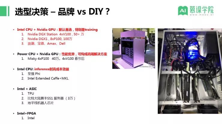 数据层面,企业能做的决策不多,只能“看菜吃饭”,但在算力层面,企业有很多的选择,比如选择什么样的框架,选择品牌设备还是DIY设备,选择云服务还是自建机房等。在课程的最后部分,吴博详细介绍了许多选型决策和算力优化方面的技巧。