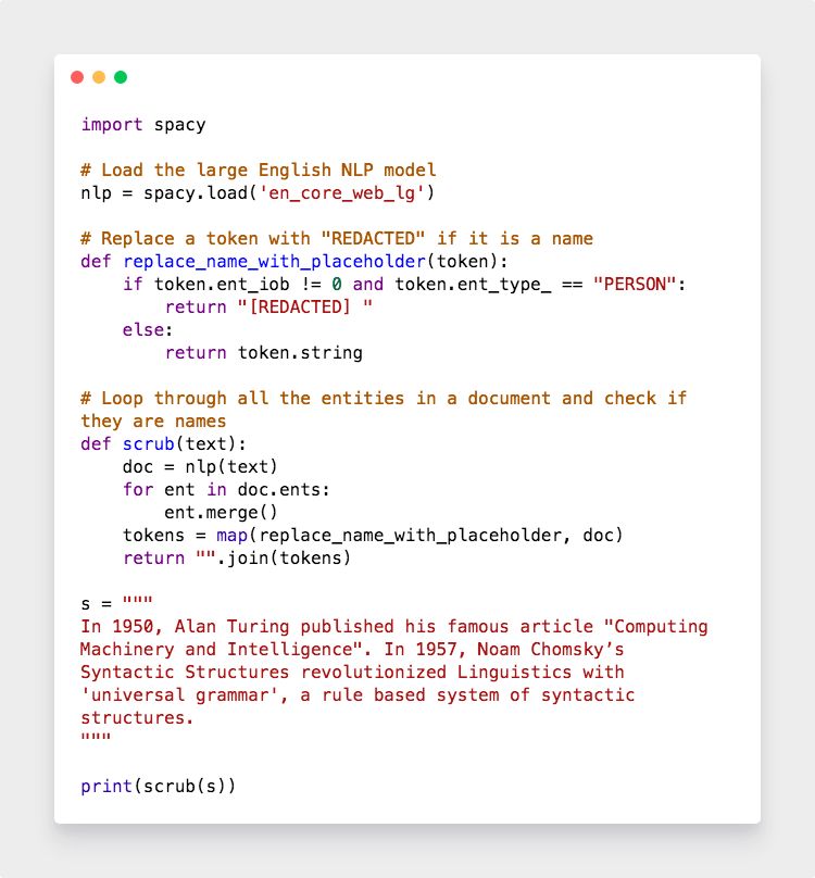 我们接下来进一步,构建一个数据清理器。假设你拿到了一份全国酒店入住人员登记表,你想把里面的人名找出来替换掉,而不改动酒店名、地名等名词,可以这样做:
