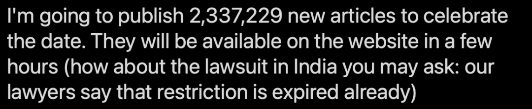 为了答谢大家的支持,Sci-Hub表示将在接下来的几年里,进行