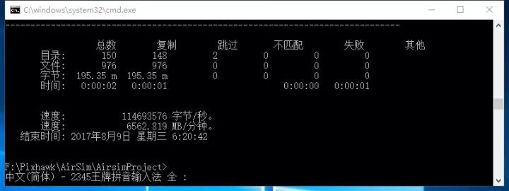 按下 win+R 运行cmd,进入UE工程目录,运行update_airsim.cmd。运行成功后,会将airsim工程的 ~\Plugins\AirSim 文件夹复制到 UE工程。