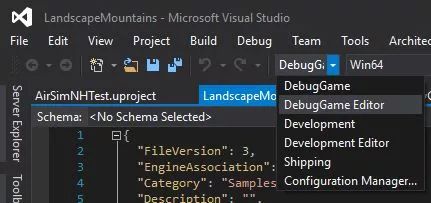 重新在Visual Studio中打开LandscapeMountains.sln ,确保VS的build配置为 "DebugGame
