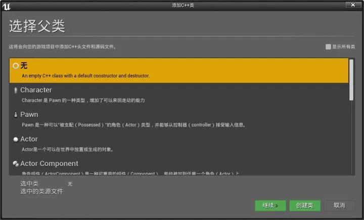 文件-新建C++类,类型选择无,点击继续,选择默认名Myclass,点击创建类。