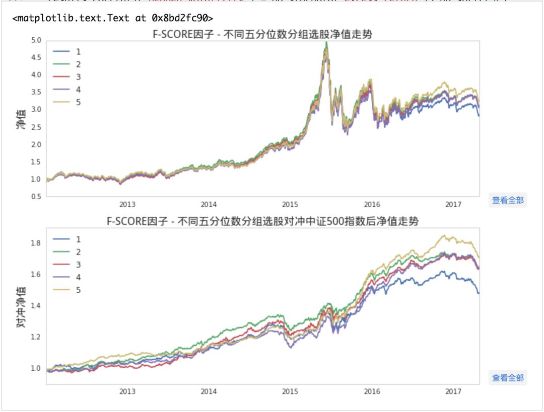 上面第一张图片是按照 F-SCORE 因子在不同分位数处选股,一到五分位中,五分净值走势最好。