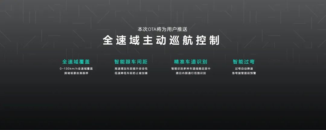 智能驾驶域升级了 0-130km/h 范围内的全速域主动巡航能力,优化了拥堵场景防加塞和智能过弯项目,提升了车道线识别居中能力。此外,在遇到行人、非机动车、大型车辆和占道车辆时,主动巡航提供车道内主动规避的“羚羊避险”功能。