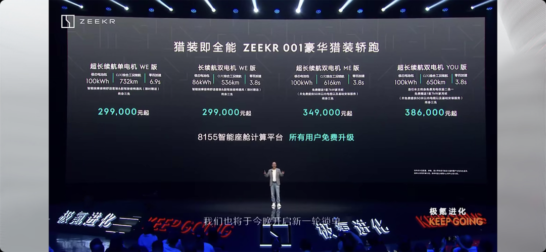 但是整场发布会下来,最激动人心的还应该是这个消息:极氪为车主准备了使用 8155 处理器的座舱域控制器升级方案,替换座舱域控制器大概两个半小时。升级更好的芯片,用户需要付的费用是: