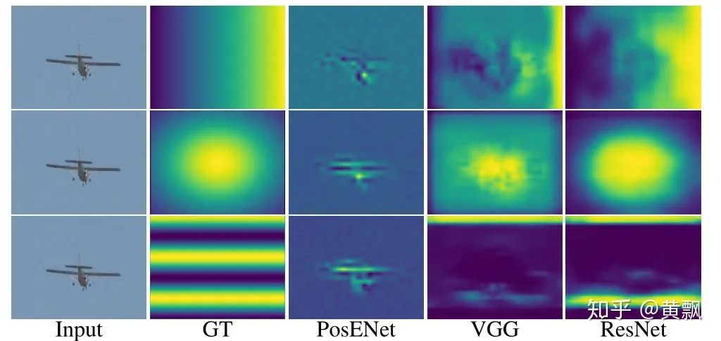 GT是三种分布生成的groundtruth,PosENet是作者提出的网络,没有padding。我们可以看到PosENet并没有得到位置分布信息,而是保持了相等性。而存在padding的VGG和ResNet则都预测出了位置分布。由此可见padding对于位置的作用,也对上一章的内容作了补充,padding对于平移不变性和相等性也有影响。
