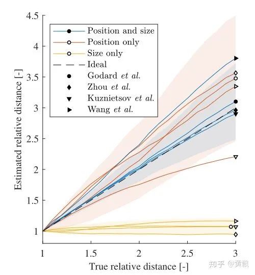 可以发现,尺度对于深度信息的预测没有什么影响,也就是说CNN网络是通过目标纵坐标来估计深度的,所以说网络实际上是在过拟合训练集,从中学习到一些固定场景下的深度和相对位置的对应关系。