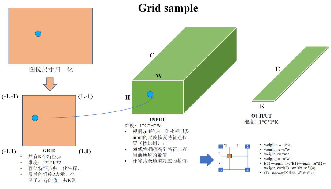 构建grid:将归一化后的特征点罗列起来,构成一个尺度为1*1*K*2的张量,其中K表示特征数量,2分别表示xy坐标。