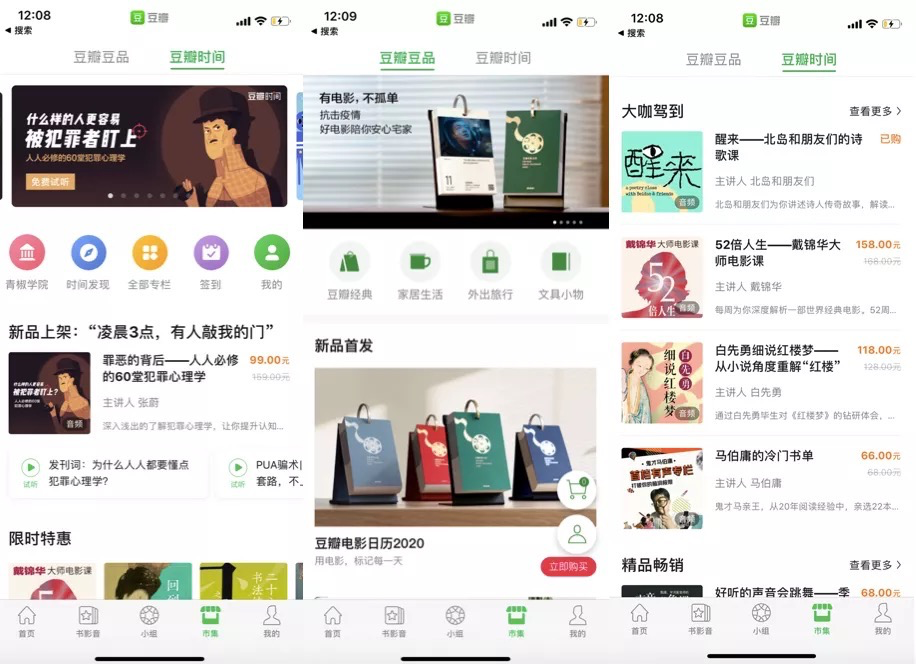 早在2011年,阿北就宣布豆瓣已基本实现盈利,那年9月豆瓣在完成第三轮5000万美元融资后,开始更主动的商业尝试,在传统的品牌广告营收、图书/电影票导流模式外,豆瓣在以“豆瓣东西”探索导购模式后,重点布局自营电商平台豆瓣市集,2017年推出付费内容产品“豆瓣时间”,上线5天销售额破百万。