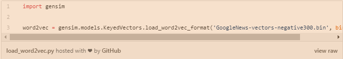 这些步骤使我们能够使用来自Word2vec库的预训练向量。