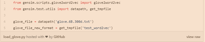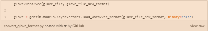 我们需要将GloVe转化为Word2vec的格式,以便可以在gensim中进行使用,例如: