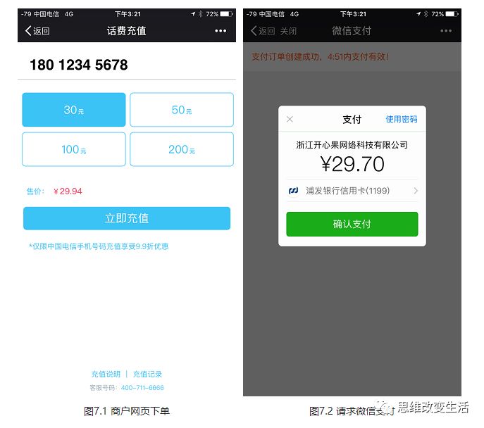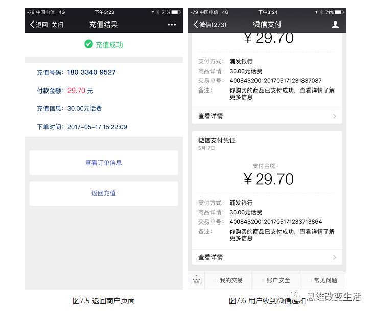 步骤6:如图7.6,微信支付公众号下发支付凭证。