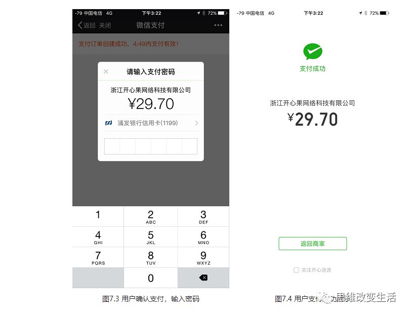 步骤4:如图7.4,密码验证通过,支付成功。商户后台得到支付成功的通知。