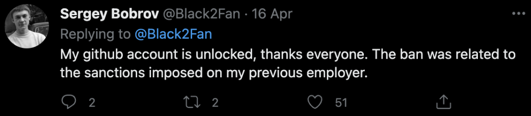 相比而言,封禁数十个托管代码内容表面上和这些被制裁实体没有联系的个人账号,就有些令人惊讶了。