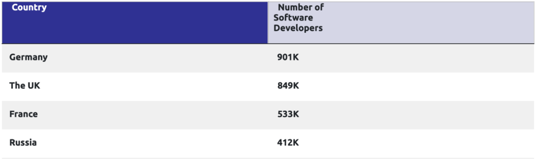 2021年共有41.2万开发者。假定俄罗斯就如欧美所言,实行军民不分家举国体制,那么这些开发者都可能受到潜在的影响。