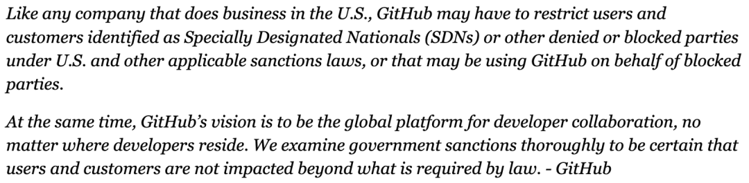 毕竟作为美国企业的Github在3月底的官方博文中有明确提到: