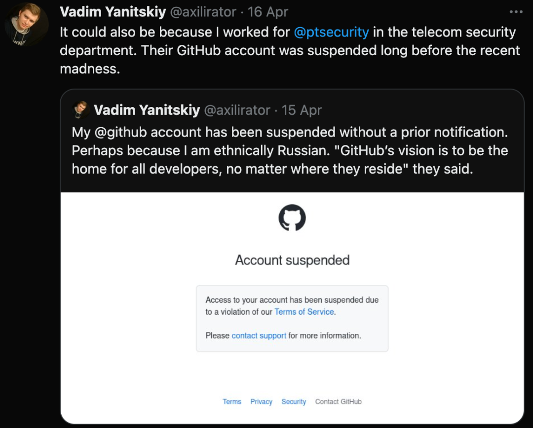 https://www.bleepingcomputer.com/news/security/github-suspends-accounts-of-russian-devs-at-sanctioned-companies/