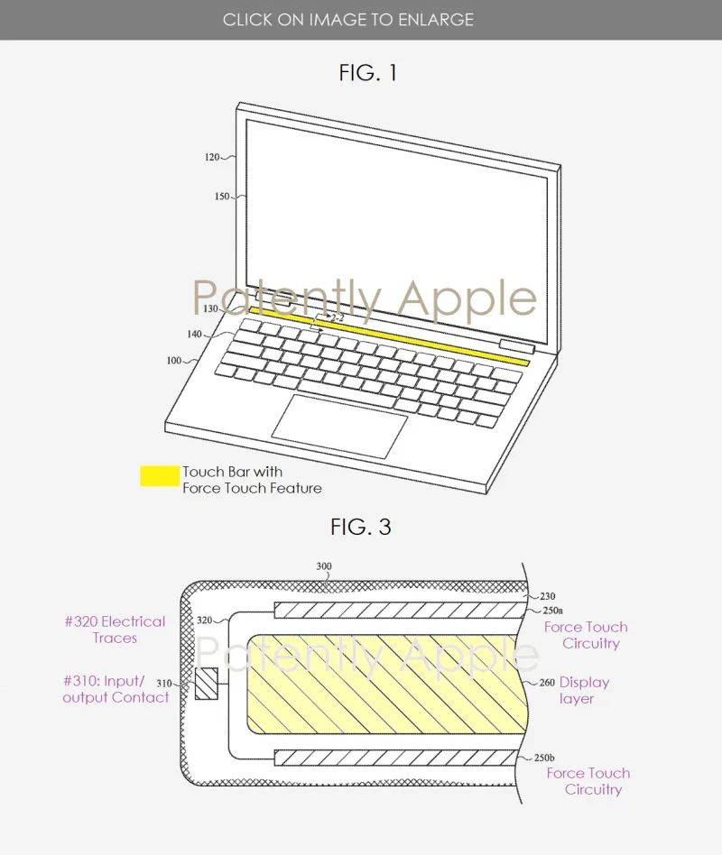 昨日有消息称,苹果将在明年下半年推出全新设计的 MacBook 笔记本电脑。果粉们焦急等待的同时,苹果递交的一份新的专利申请在美国专利商标局得以曝光,揭露了 Touch Bar 触控栏的全新版本——带有 Force Touch 功能,但外观并没有变化。