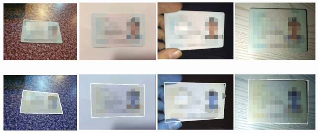 目标物体定位并矫正。基于现有的先验信息,定位最后的方法为采用模板关键点特征匹配的方法,并利用模板上特征点及目标图像特征点坐标之间的关系进行透视变换,以定位目标物体,如下图所示。接着,基于四角的坐标,进行旋转、仿射、尺寸的变换,并提取出目标物体的俯视图。