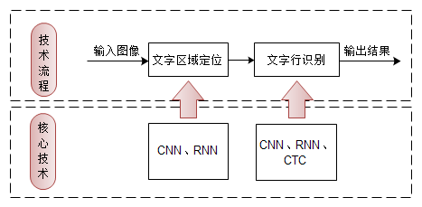 目前,从技术流程上来说,主要分为两步,首先是检测出图像中的文本行,接着进行序列识别。可见,基于深度学习的OCR识别框架相比于传统OCR识别框架,减少了三个步骤,降低了因误差累积对最终识别结果的影响。