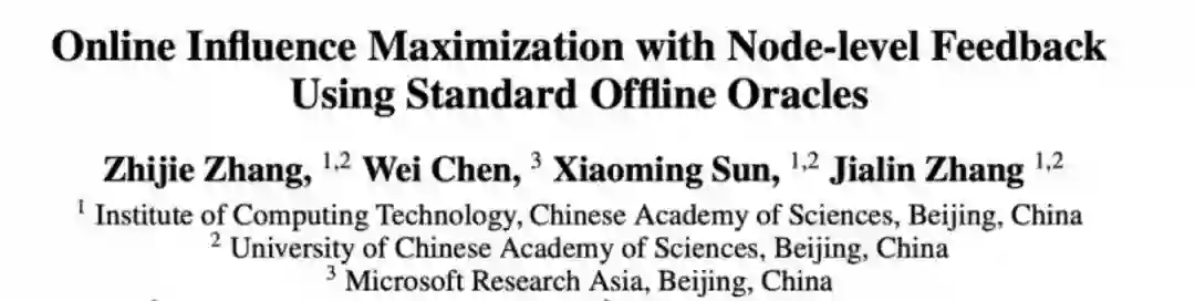 使用点反馈与标准离线黑箱算法的在线影响力最大化问题 论文链接:https://arxiv.org/abs/2109.06077 本文研究了在线影响力最大化问题:玩家与未知社交网络进行多轮交互,每轮需要选取种子集合投放信息,然后观察社交网络上信息传播过程的反馈数据,据此学习网络参数并更新选取策略,最终最小化多轮交互的累积悔值,即每轮选取的集合与使得影响力最大化的最优集合的差距之和。 文献中通常研究两种反馈数据类型:点反馈和边反馈。点反馈揭示哪些节点何时被激活,边反馈则额外揭示信息经由哪些边传播。算法设计中通常需要调用离线影响力最大化算法帮助选择每轮的种子集合。标准离线黑箱算法只需优化种子集合本身,文献中存在大量可高效实现的这类算法;而非标准离线黑箱算法需要同时优化种子集合和网络参数,这是难以实现的。 本文针对独立级联(IC)和线性阈值(LT)传播模型,各自设计了一个基于点反馈数据并且使用标准离线黑箱算法的最优悔值在线算法,改进了之前 IC 模型下基于边反馈的算法和LT模型下使用非标准黑箱的算法。本文提出变种极大似然估计方法来处理点反馈数据,通过定义并优化伪似然函数来学习网络参数。本文的分析能够针对每个参数得到一个置信区间,从而使得调用标准离线黑箱算法成为可能。而前人工作在使用点反馈数据时,只能针对参数向量得到一个高维置信域,从而必须调用非标准离线黑箱算法。 看完今天的论文分享是不是还意犹未尽?想了解更多人工智能领域学术界和产业界的前沿研究吗?扫描下方二维码,来 B 站观看 AAAI 2022 论文分享会完整视频回放!更多论文分享,也请关注 B 站“微软中国视频中心”账号。