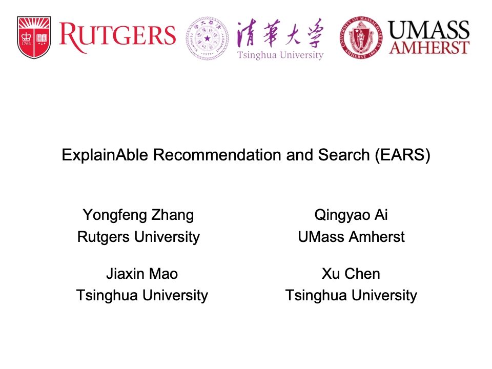 【导读】SIGIR 2019正在法国巴黎如火如荼的召开。小编收集到了SIGIR2019的可解释性体检和搜索教程。可解释的推荐和搜索尝试开发搜索/推荐模型,来保证高质量的推荐或搜索结果,以及可以生成结果的直观解释。这有助于提高系统的透明性、说服力、可信度和有效性。本教程主要介绍可解释推荐和搜索算法的最新研究,以及它们在搜索引擎、电子商务和社交网络等实际系统中的应用。本教程旨在向社区介绍和交流可解释的推荐和搜索方法,并聚集对该研究方向感兴趣的研究人员和实践者进行讨论、思想交流和研究推广。