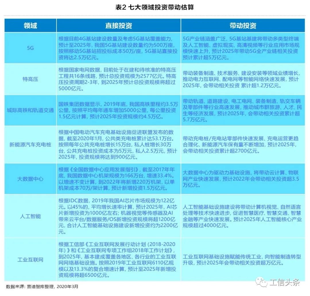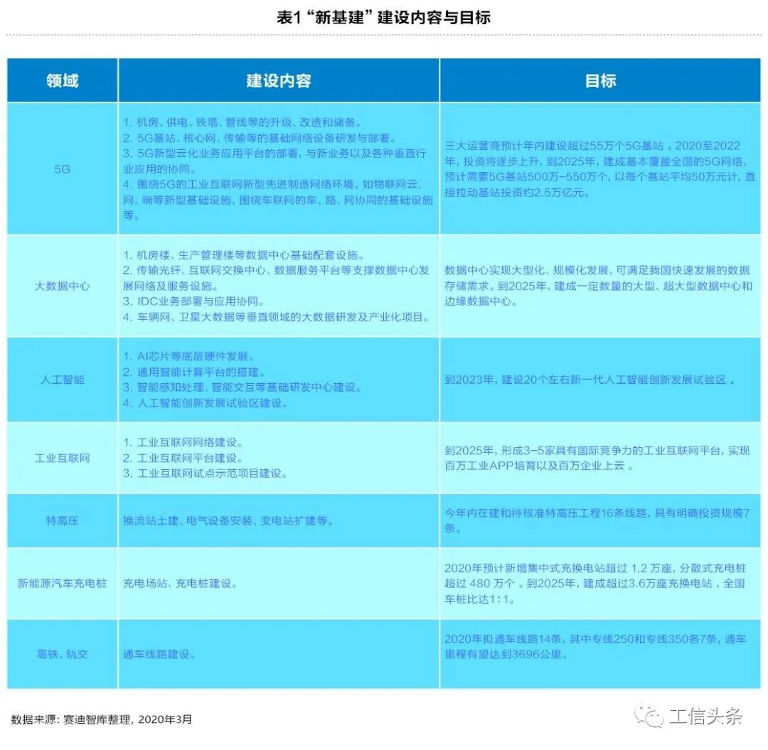 “新基建”是与传统的“铁公基”相对应,结合新一轮科技革命和产业变革特征,面向国家战略需求,为经济社会的创新、协调、绿色、开放、共享发展提供底层支撑的具有乘数效应的战略性、网络型基础设施。“新基建”包括5G基建、特高压、城际高速铁路和城市轨道交通、新能源汽车充电桩、大数据中心、人工智能、工业互联网等七大领域。