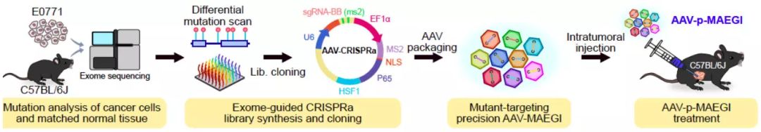 研究人员选取腺相关病毒(AAV)来进行药物投递,通过全外显子测序,筛选出三阴性乳腺癌细胞系的所有突变基因,并采用精准激活库(只靶向肿瘤组织不影响正常组织)激活三阴性乳腺癌的所有突变基因,结果发现,44%的原位瘤产生完全/近完全缓解(治愈),67%的非直接注射的同体非原位瘤也产生完全/近完全化解。而新系统更加神奇之处在于:刺激机体产生的抗肿瘤免疫具有长效持久性--通过该系统治愈的小鼠在三个月后仍然可以完全清除同种肿瘤的攻击,并保持了6个月以上的完全缓解。