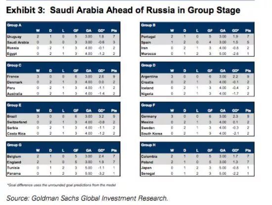 高盛是最热衷于预测世界杯的机构之一,其今年发布了长达50页的2018年世界杯预测报告。这次预测报告采用了最新的“机器学习模型”来跑大数据预测,还联合了著名教练卡洛·安切洛蒂。其本次的主要预测包括: