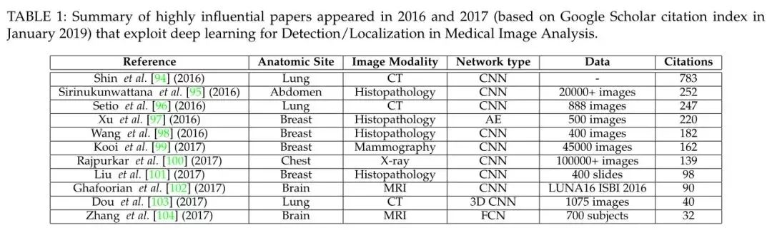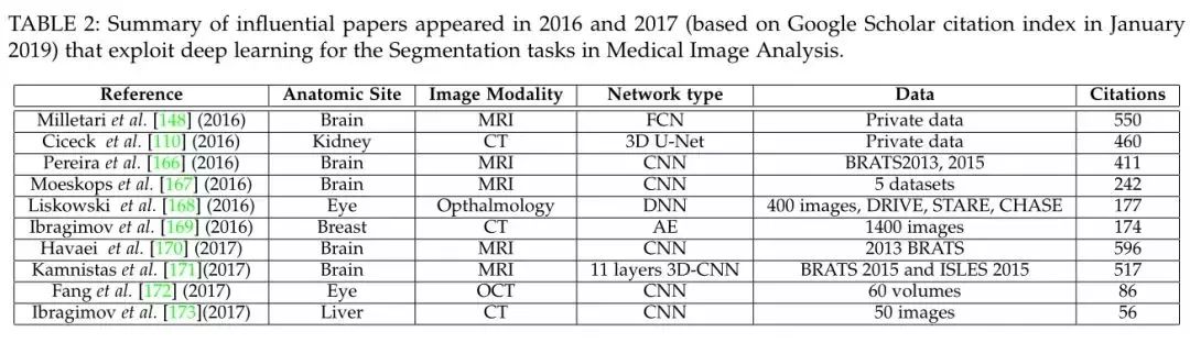 作者将2016、2017年新出的文献按照谷歌学术的索引排序,列出了每个技术领域具有影响力的文章。(因2018年刚过,数据还不完整,所以不包含2018年的论文)