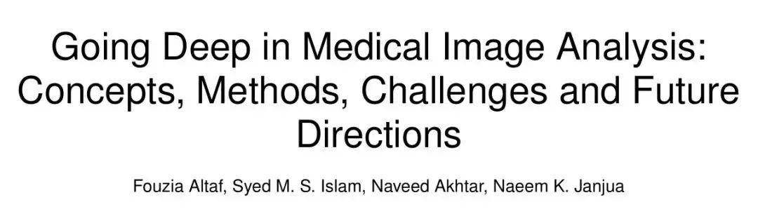 今天arXiv新上一篇论文《Going Deep in Medical Image Analysis: Concepts, Methods, Challenges and Future Directions》,来自澳大利亚埃迪斯科文大学的研究人员综述了深度学习在医学图像分析领域应用的概念、最近出现的常用方法、数据集、面临挑战和可能的未来方向