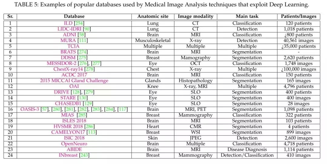 作者按照医学图像分析的技术方向和应用场景(使用的数据集)归纳成下图。