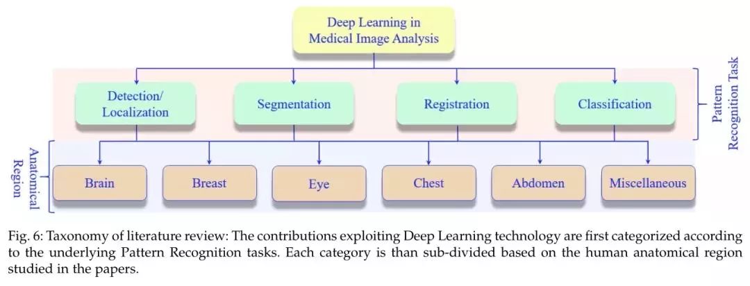 医学图像分析主要包含的模式识别任务是检测/定位、分割、配准、分类。常见的医学影像包括Brain、Breast、Eye、Chest、Abdomen等。