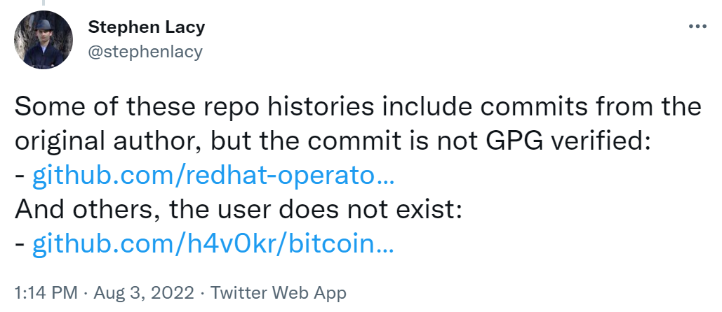 按照这个网站的说法 ,实际上,35000个原始资源库并未「被劫持」 ,而是在clone中被添加了恶意内容。数以千计的后门被添加到了正常合法项目的副本里(fork或clone),以达到推送恶意软件的目的。