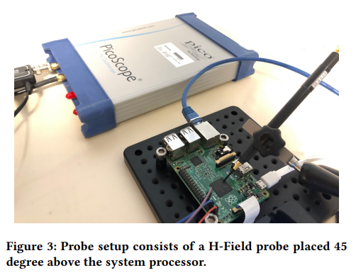 该安全设备使用示波器 (Picoscope 6407) 和连接到 Raspberry Pi 2B 的 H-Field 探头来检测受到攻击的计算机发出的特定电磁波中的异常情况。研究人员称使用了这种技术「获得有关恶意软件类型和身份的准确信息。」然后,检测系统依靠卷积神经网络 (CNN) 来确定收集的数据是否表明存在威胁。