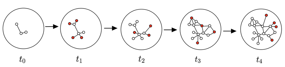 ),从而在每个时间片生成的仿真样本会和真实样本一起用于模型的增量更新,使得模型不再需要重新访问历史数据。但是生成模型主要在计算机视觉领域发展,在图领域遇到了困难,一些已有的图上的生成模型(比如NetGAN和GraphRNN)更关注生成全图的拓扑结构,而不是每个节点的邻域信息。