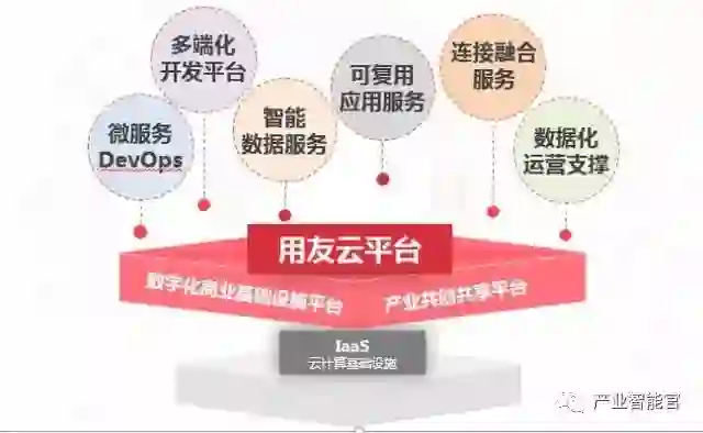 用友工业互联网平台(用友精智)的PaaS层正是由用友云平台作为支撑。用友云平台为用友精智提供支持微服务架构的DevOps;多端化的开发平台;支撑智能的数据服务;面向企业的可复用应用服务;面支持物联网的链接融合服务;于数据化的运营支撑。