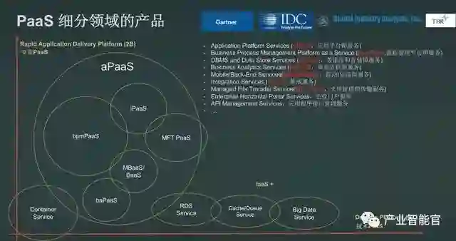 PaaS就是在云计算和新技术环境下,将这些复杂能力抽象成即需即用的一组服务,一种云计算场景化的中间件。Gartner对PaaS的定义包括了应用、集成、业务流程、移动和数据库服务等细分领域。