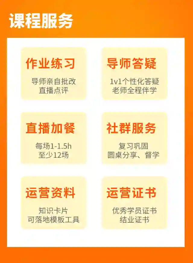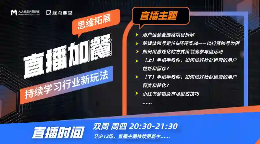 同时,互联网发展瞬息万变,各种新的玩法不断涌现。为了让大家能与时俱进,及时抓住风口,《互联网高薪运营培养计划》在原本的课程体系之外,还设置了“直播加餐”,每隔一周老师就会讲解时下热门的玩法,比如“小红书运营”、“抖音运营”、“社群运营”等等。