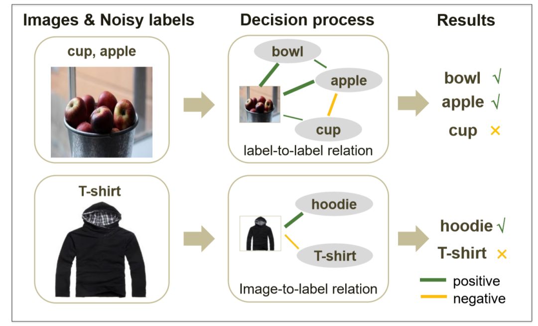 图表1 利用标签-标签关系和图像-标签关系的噪声学习方法