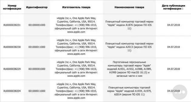 科技网站Apple Insider推测,这五款产品分别为新款12英寸MacBook、新款MacBook Air、新款13英寸MacBook Pro(有/无Touch Bar两种),以及新款15英寸MacBook Pro。此外,苹果还注册了五个型号的iPad产品。