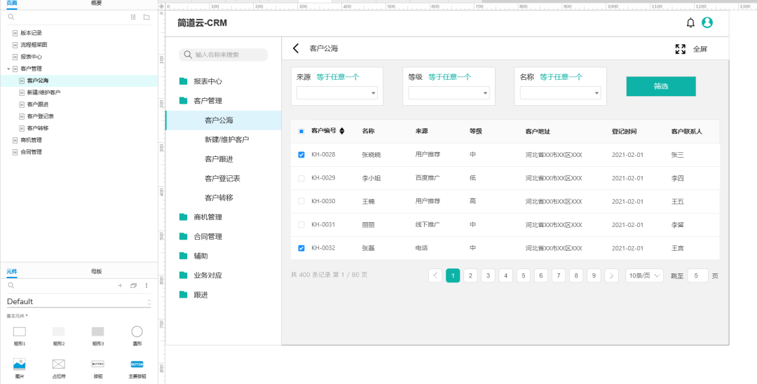 做的简道云CRM后台原型