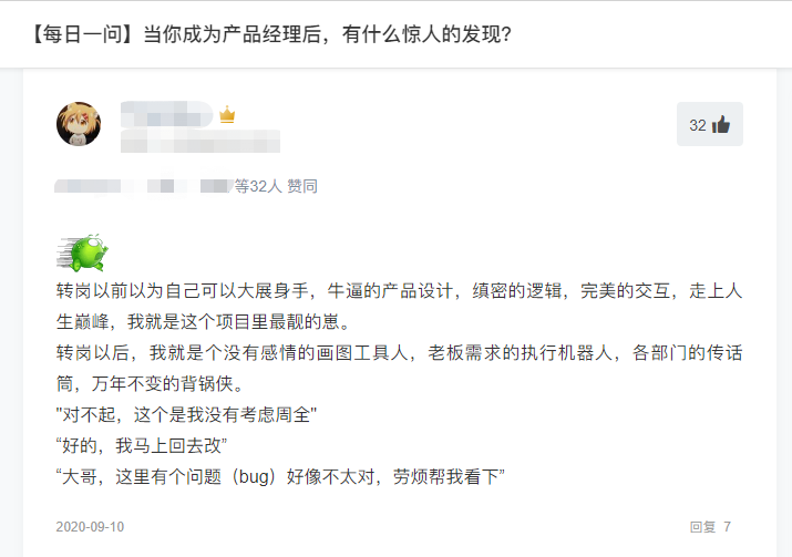 其中一个产品新人的回答,引起了不少人的共鸣——