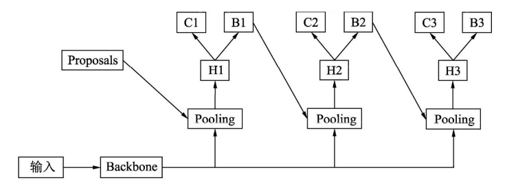 Cascade R-CNN的每一个检测器的边框输出作为下一个检测器的输入,并且检测器的IoU阈值是逐渐提升的,因此这种方法可以逐步过滤掉一些误检框,并且提升边框的定位精度。