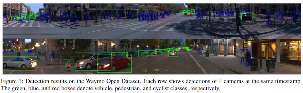 Waymo开放数据集挑战吸引了计算机视觉和自动驾驶领域的许多参与者。比赛中使用的Waymo Open Dataset提供了在真实自动驾驶场景中由多个LiDAR和摄像头传感器收集的高质量数据。在2D检测赛道中,在摄像机图像中采用2D边界框对车辆,行人和骑自行车者三类目标进行标注。在自动驾驶应用中准确而可靠地检测车辆、骑自行车的人和行人至关重要。为了实现这一目标,本文在这一挑战中开发了最先进的2D目标检测系统。